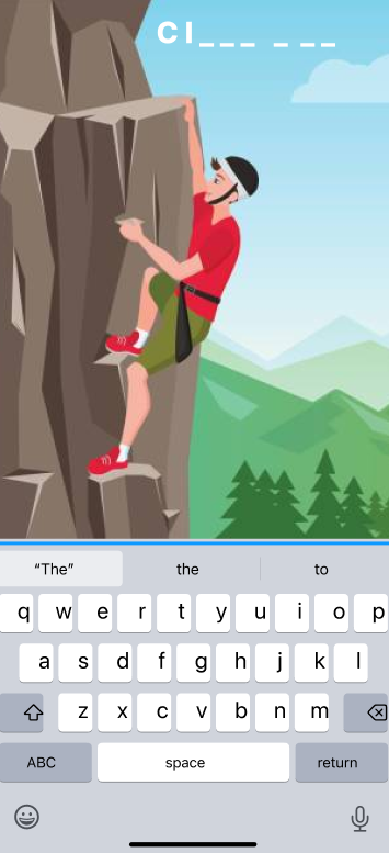 This game is the hangman but each letter you guess you climb you go up and for each you miss you fell down, in case you win you'll be asked to give your name in order to add to the leaderboard, in case you fall your game ends and you loose.
